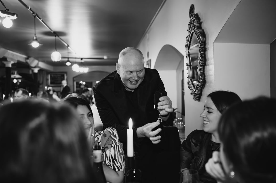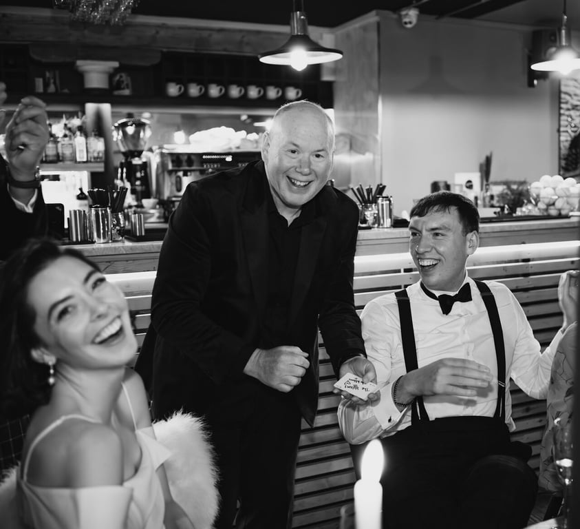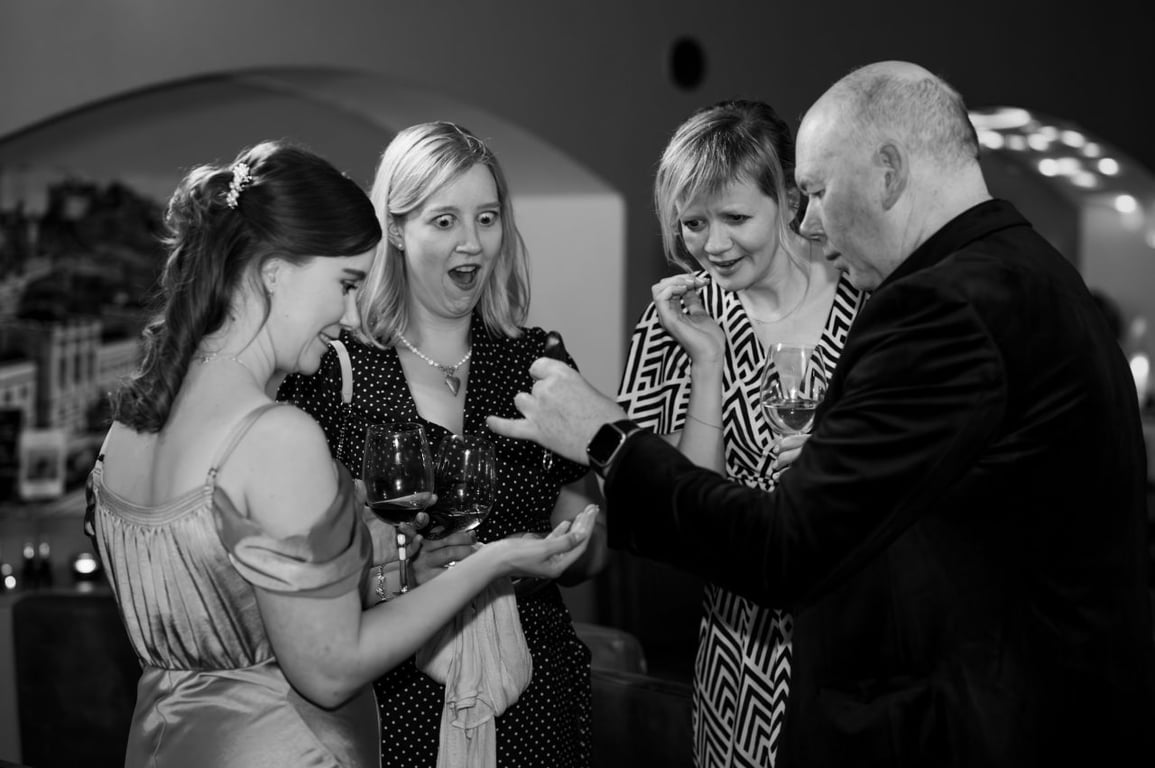 Alongside his magic, Gary is an exceptional host. He guides the day with confidence and warmth — introducing key moments, keeping the timeline smooth, and making sure the atmosphere always stays upbeat. His client list includes some of Scotland’s most prestigious venues and brands, including Gleneagles, showcasing the trust placed in his professionalism and talent. For couples looking for a polished, entertaining, and reliable magician-host, Gary is an outstanding choice.